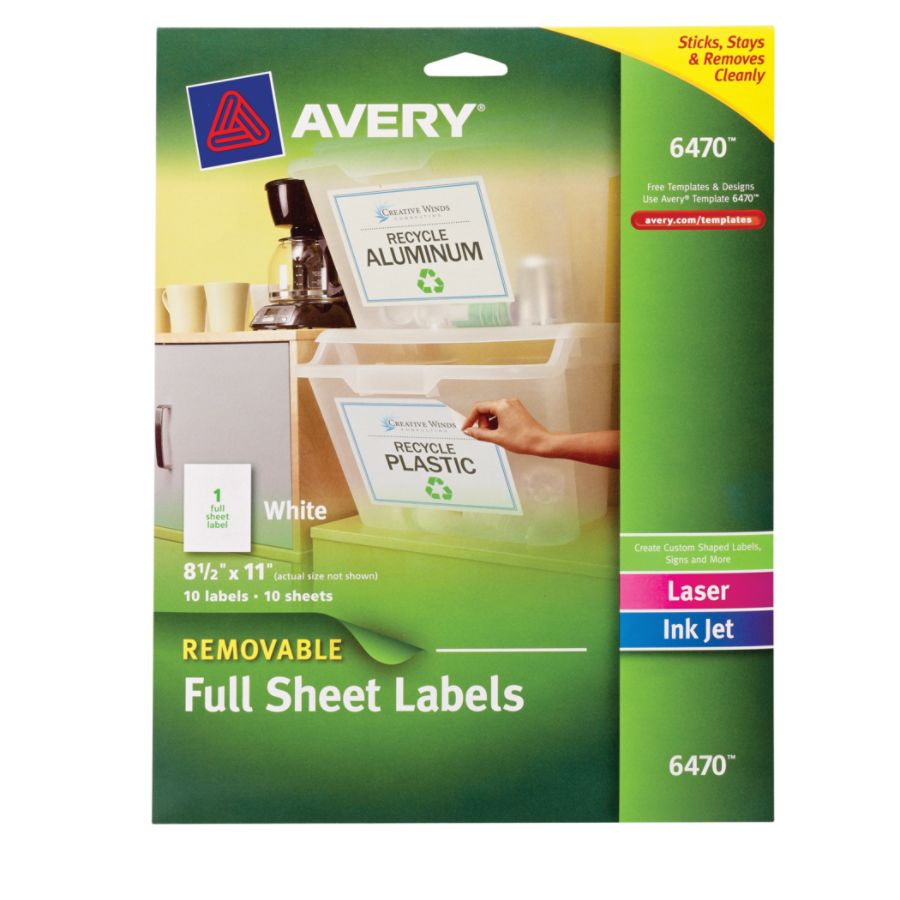 Avery Removable Full Sheet Labels 6470 8 12 x 11 White Pack Of 10 - Office Depot in 2020 | Full ...