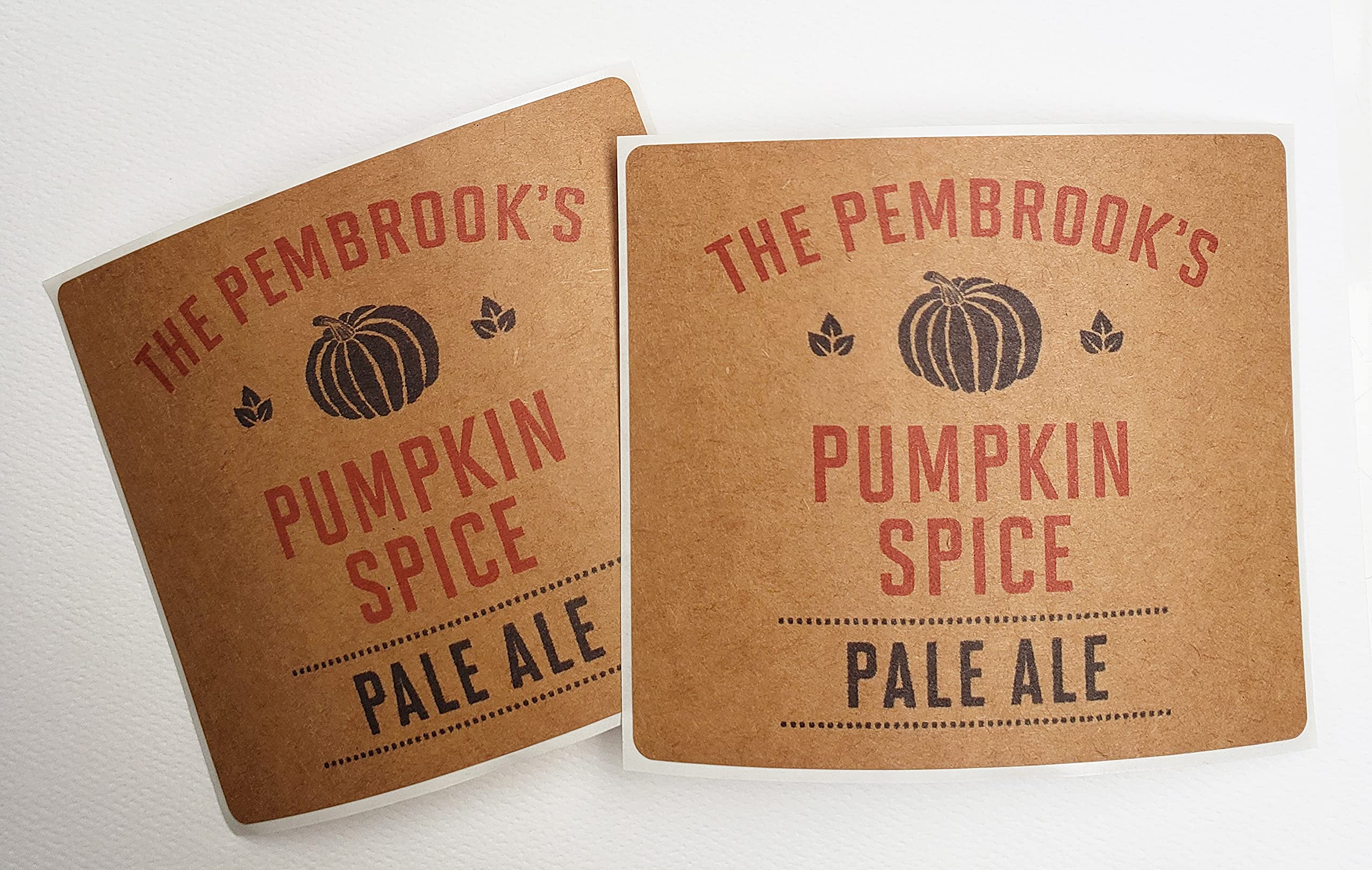 PERSONALIZED BEER BOTTLE LABELS FOR HOME BREW (Pumpkin Spice) on Kraft Labels 4" Wide X 3 1/2" Tall (24)